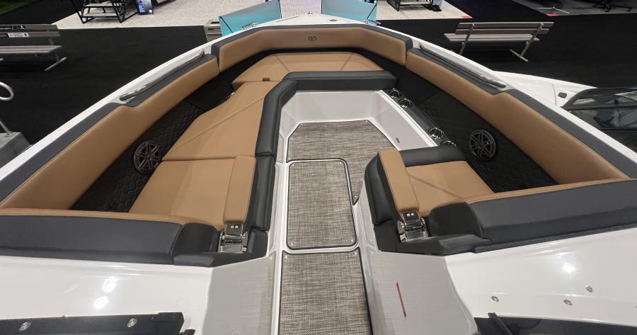 Offering the most room in the Surf Class, the R8 Surf features Cobalt’s Custom Wave Technology surf system with multiple hard ballast tanks, the Volve FWD powertrain, and a specifically designed surf hull that integrates with our best-in-class Surf Gate™ technology to shape the perfect wave for a standout ride. Strikingly redesigned, the R8 Surf features a higher profile with more freeboard, a roomy, expansive interior with both bow and cockpit larger fore to aft, all providing extra comfort for persons and plenty of room for everything they need for a day on the water.
