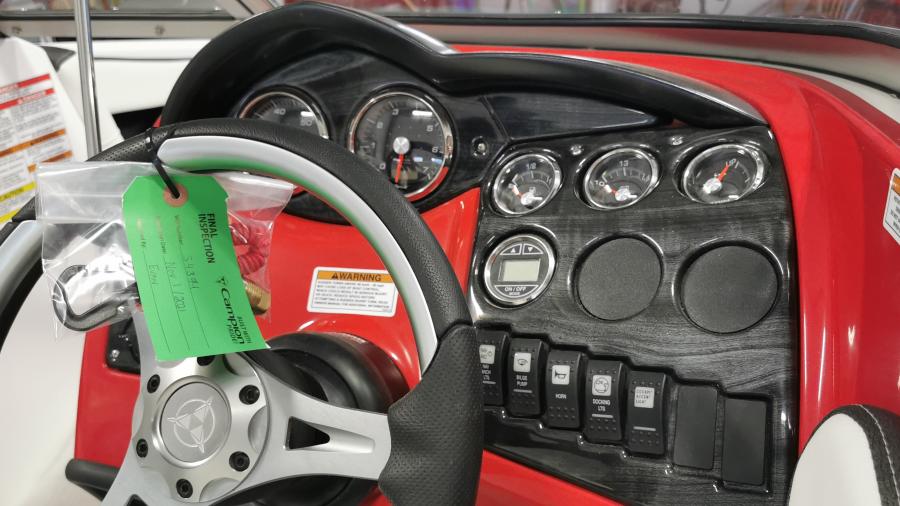 The premium trim level offers an upgraded stereo package with amp, dual battery switch, in dash depth sounder, LED lit cupholders and cockpit lighting, bow filler cushions, heavy duty rub rail insert, stainless steel pull-up cleats, tilt steering, and premium snap in marine grade flooring. The Premium Graphic edition offers everything the Premium does but with a sleek decal package and a color coordinated dash inside the boat.